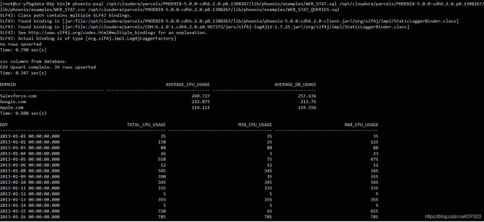phoenix-psql /opt/cloudera/parcels/PHOENIX-5.0.0-cdh6.2.0.p0.1308267/lib/phoenix/examples/WEB_STAT.sql /opt/cloudera/parcels/PHOENIX-5.0.0-cdh6.2.0.p0.1308267/lib/phoenix/examples/WEB_STAT.csv /opt/cloudera/parcels/PHOENIX-5.0.0-cdh6.2.0.p0.1308267/lib/phoenix/examples/WEB_STAT_QUERIES.sql