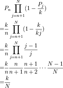 在循环内第n行被抽取的机率为k/n,以PnPn表示。如果档案共有N行,任意第n行(注意这里n是序号,而不是总数).