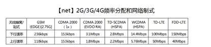 LTE系统引入了OFDM(Orthogonal Frequency Division Multiplexing,正交频分复用)和MIMO(Multi-Input & Multi-Output,多输入多输出)等关键技术,显著增加了频谱效率和数据传输速率(20M带宽2X2MIMO在64QAM情况下,理论下行最大传输速率为201Mbps,除去信令开销后大概为150Mbps,但根据实际组网以及终端能力限制,一般认为下行峰值速率为100Mbps,上行为50Mbps),并支持多种带宽分配:1.4MHz,3MHz,5MHz,10MHz,15MHz和20MHz等,且支持全球主流2G/3G频段和一些新增频段,因而频谱分配更加灵活,系统容量和覆盖也显著提升。