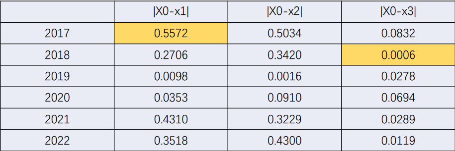 得到灰色关联系数,其中 为分辨系数,一般取0.5