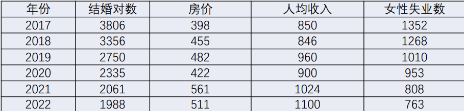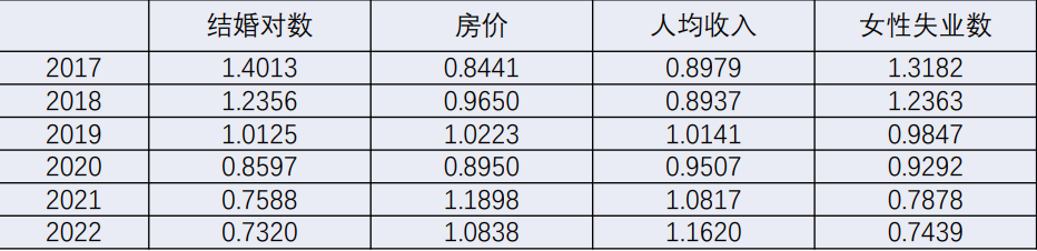 结婚对数是参考数列 ;房价,人均收入,女性失业数是比较数列