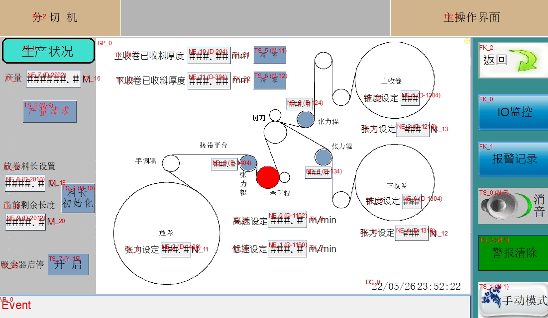 分切机程序 ,上下收放卷张力控制,无电子凸轮功能。 触摸屏威纶通,PLC是三菱FX3U系列