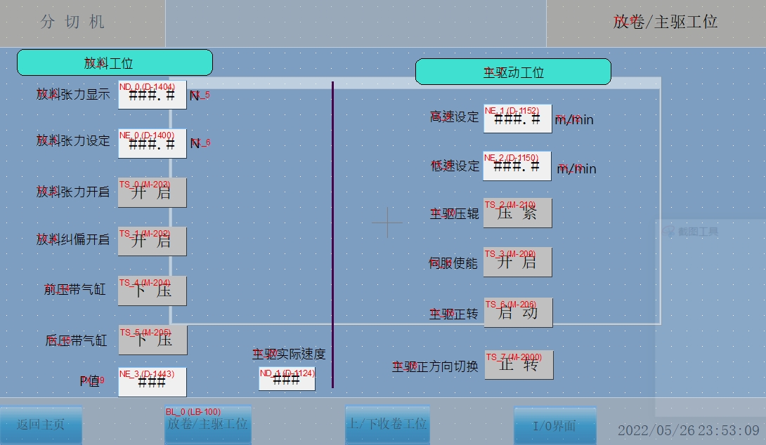 在威纶通触摸屏上,我们设计友好的界面。创建数值输入框与PLC的D0寄存器关联,方便操作人员设定张力值。同时,创建实时数据显示窗口与D1寄存器关联,实时展示当前张力大小。还可以设置启动、停止按钮等,通过与PLC的软元件连接,实现对分切机运行状态的控制。