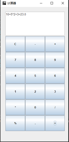 private String[] str = {"C", "-", "+", "7", "8", "9", "4", "5", "6", "1", "2", "3", "*", "0", "/", "%", ".", "="};//计算器上的按钮