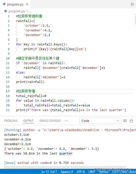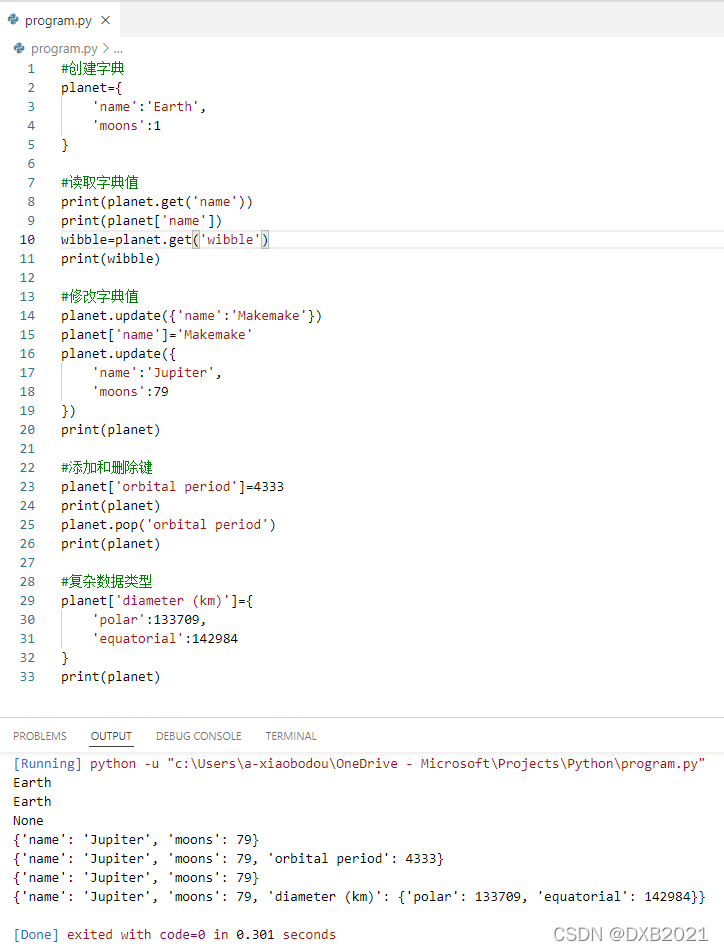 可以读取字典中的值。 字典对象具有 get 方法,可以使用该方法通过键访问值。