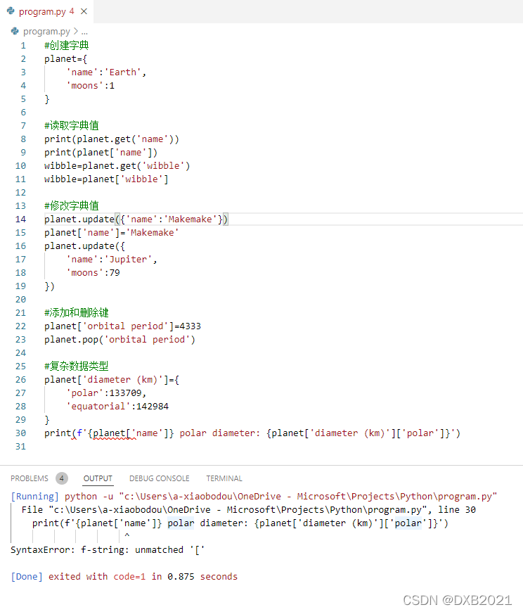 最后一个语句,核对几遍,不知道为什么报错了。我只能删除最后一个语句。