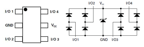 2)封装小,节省Layout空间,方便布局,TVS管阵列会比4个TVS管的体积小很多;