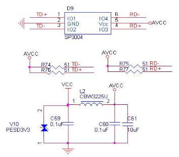 5)以太网电源AVCC设计上能节省一个TVS管;