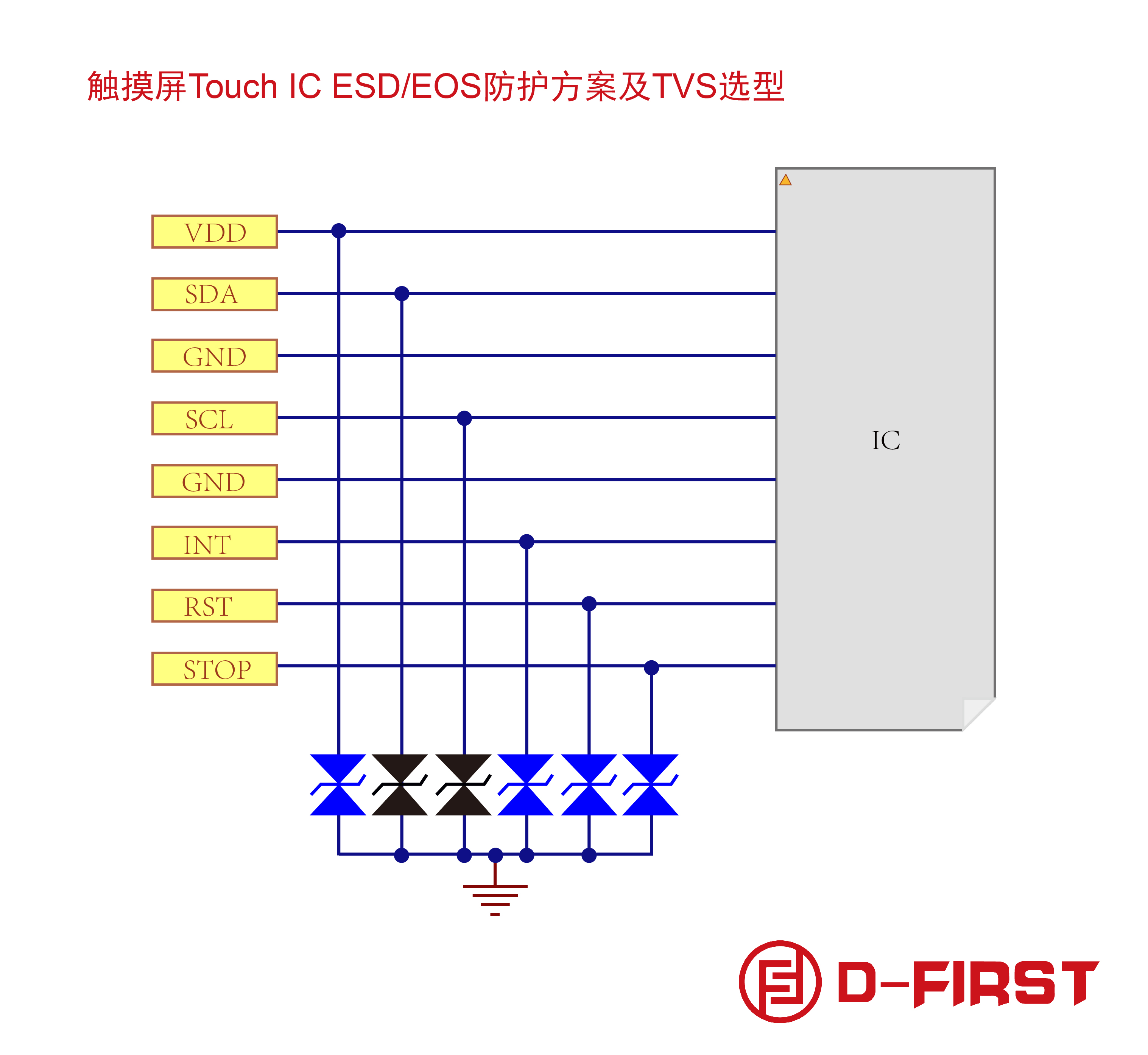 建议在静电接触口增加TVS、ESD器件,在两侧VCOM处各加一TVS,利用其防静电特性,形成静电泄放回路,增强保护。ESD(静电放电)对电子产品造成的破坏和损伤有突发性损伤和潜在性损伤两种。