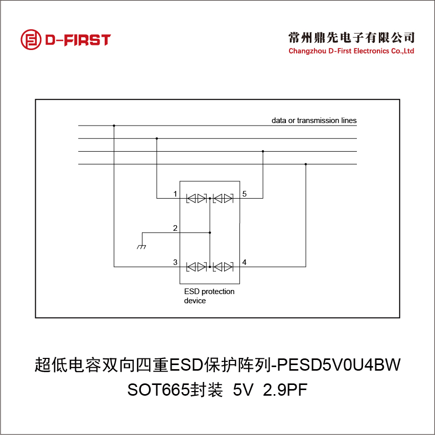 低电容双向四路ESD保护阵列-PESD5V0U4BW