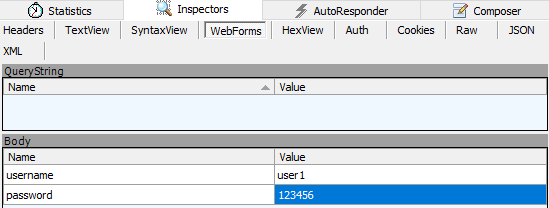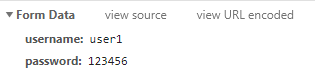 例如账号是user1,密码是123456,那么在提交登录的时候会给后台发送的HTTP请求如下(Chrome或者FireFox开发者工具捕获,需开启Preserve log):