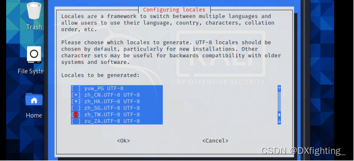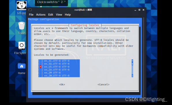 本文介绍了将Kali Linux系统语言更改为中文的步骤:首先通过终端以root权限运行dpkg-reconfigure locales,取消en_us, utf-8的选择,接着选择zh_cn和zh_hk,并确认选择zh_cn utf-8,最后重启系统即可完成语言切换。"