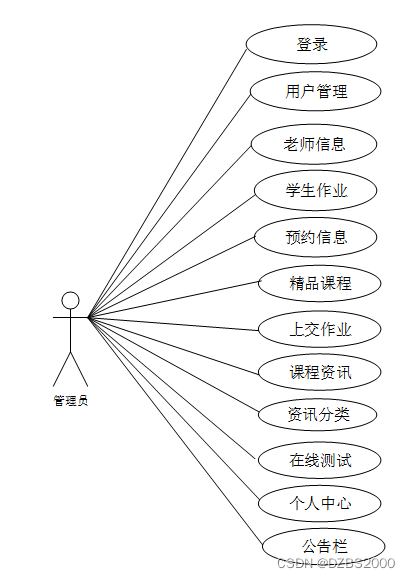 web后台管理上的管理员是维护整个在线学习系统 中所有数据信息的。管理员角色用例如图2-5所示。