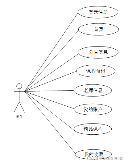 通过2.3功能的分析,得出了本在线学习系统的用例图: