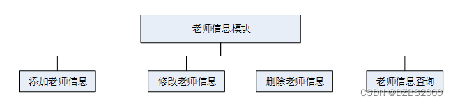 在线学习系统是中需要存储不少老师信息,其模块功能结构,具体的结构图如下:
