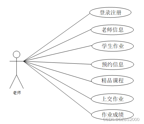 web后台管理上的管理员是维护整个在线学习系统 中所有数据信息的。老师角色用例如图2-5所示。