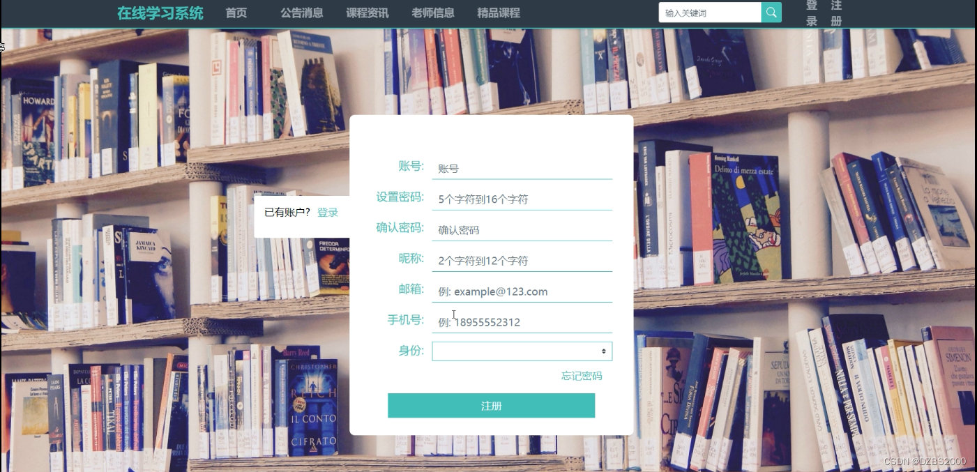 (2)在线学习系统中的web后台管理中的前端使用的是JavaScript框架,它配合ajax和jquery可以美化页面设计。