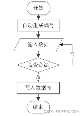 用户成功登入系统后就能够实现增加数据的操作,增加数据的编号是特定的,系统生成,用户不能随意填写,除了编号以外,其他增加信息用户自己填写,填写后的信息经过系统验证,验证合法通过就显示增加数据成功了,相反的话,就没有增加成功,图2-1显示的就是在增加数据时的流程。