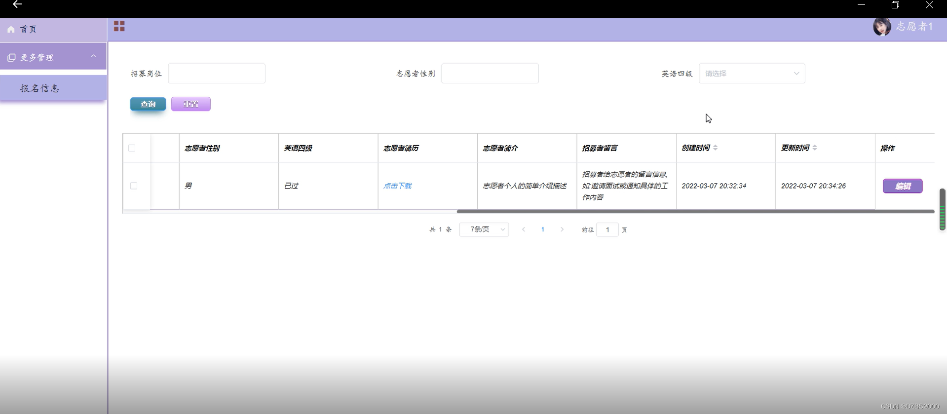 | 功能描述 | 用于报名信息管理 | |