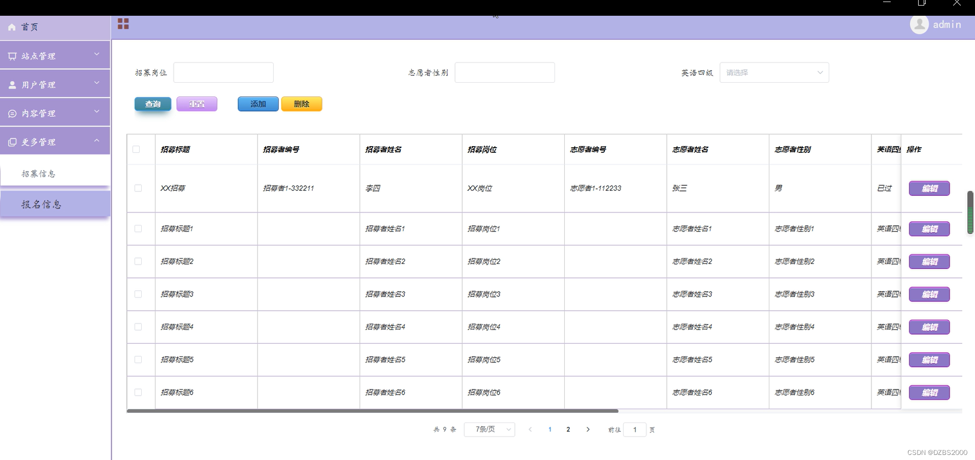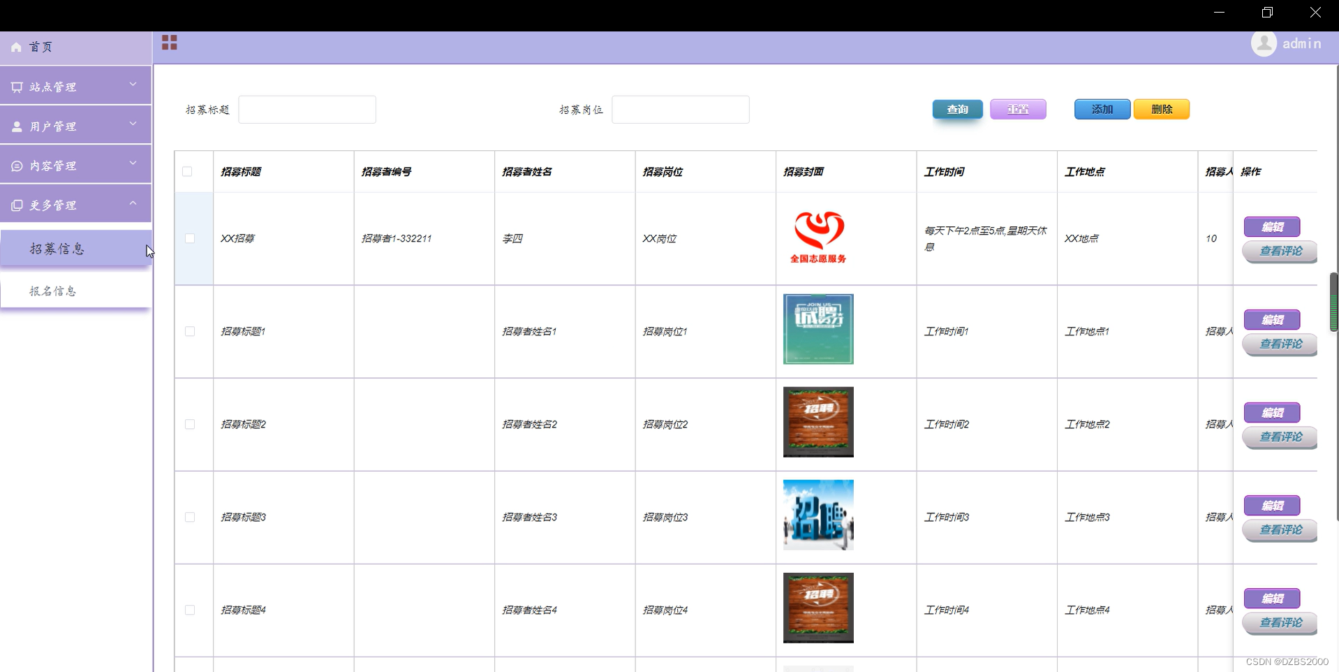 招募信息管理界面如下图所示。