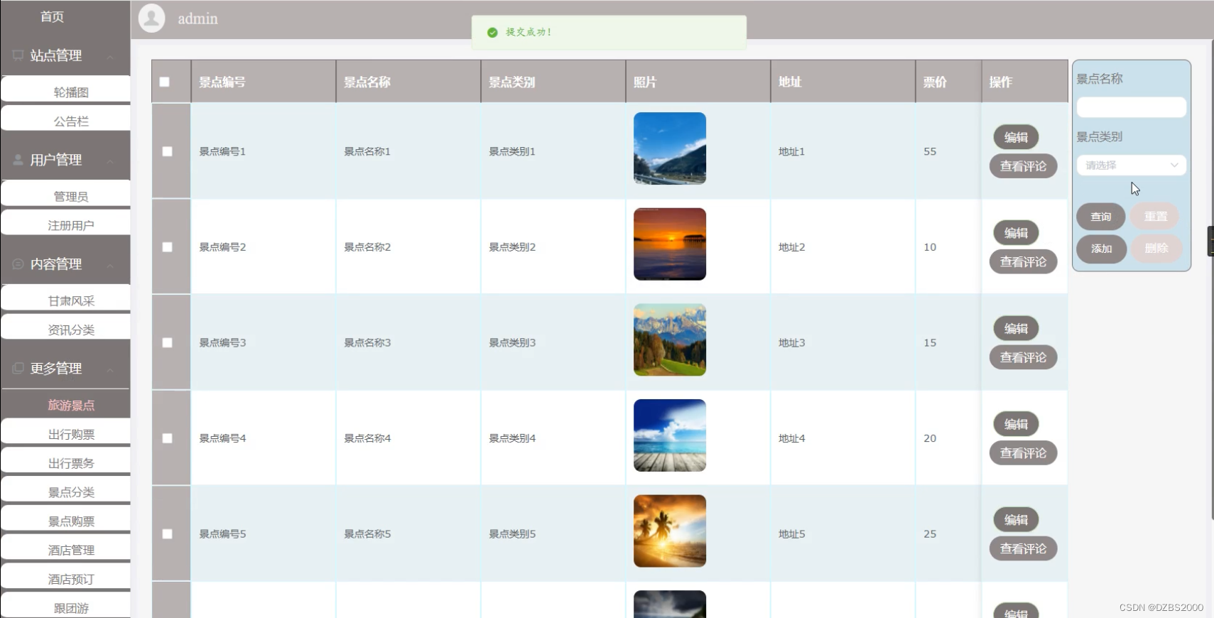 旅游景点信息管理:对旅游景点信息进行维护,添加、删除、修改信息。