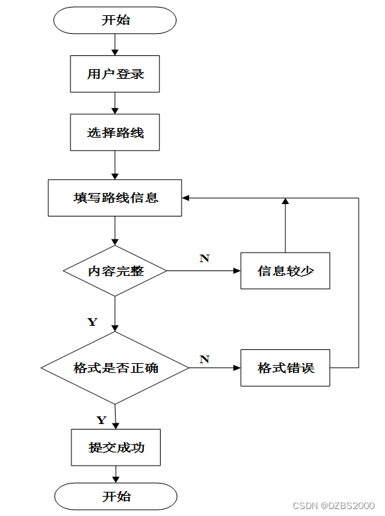 路线预订功能整体流程:用户浏览路线信息时,同时会显示路线的状态,系统会在其显示详细信息的页面时便会判断旅游路线的状态,若旅游路线状态为可行程,则会显示路线的链接按钮。在用户点击路线按钮时,会先通过拦截器判断用户是否登录,若未登录,会跳转至登录页面,提示用户先登录,若为登录用户就会跳转至填写路线信息的页面,填写好旅游路线信息之后,点击提交按钮,成功之后返回提示信息,告知是否成功。