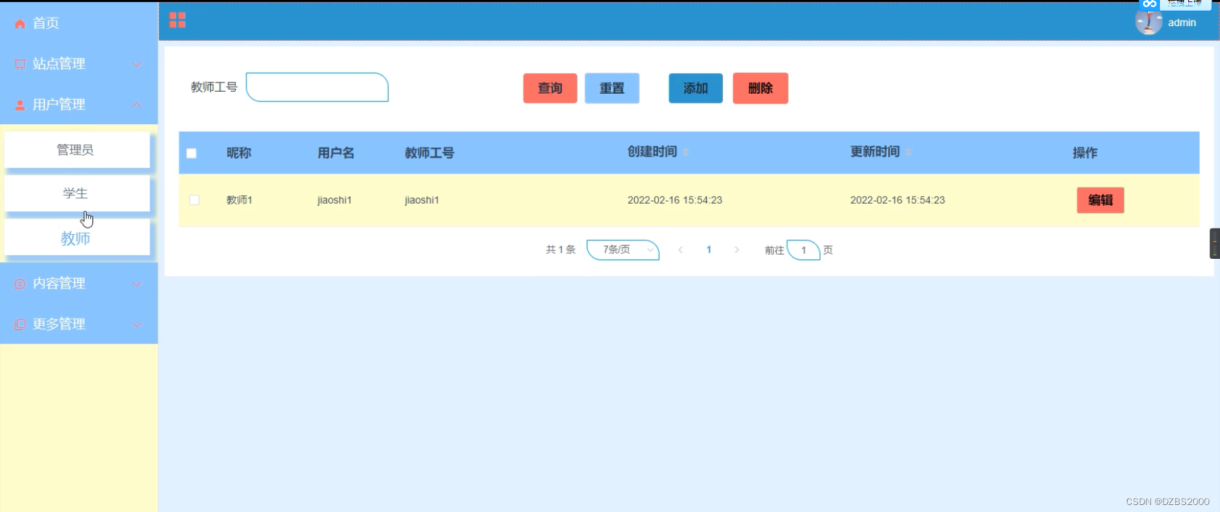 教师信息管理:对教师信息进行维护,添加、删除、修改信息。
