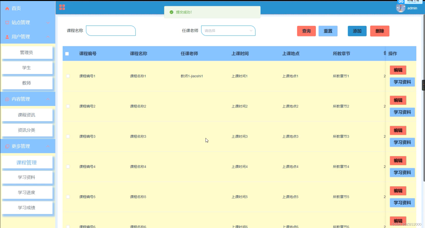 | 用例目的 | 测试用户进行课程管理操作时,该功能是否正常 | ||