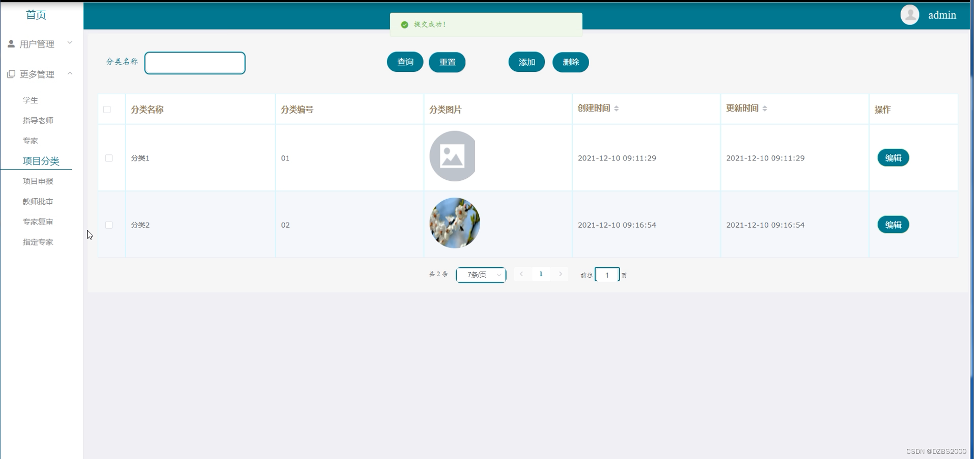 项目分类(项目分类id、分类名称、分类编号、分类图片、分类详情、添加人、)
