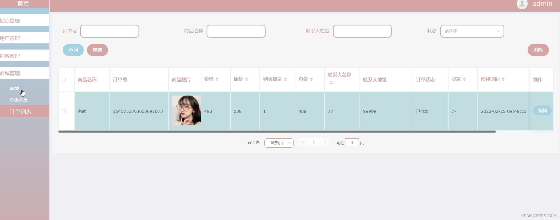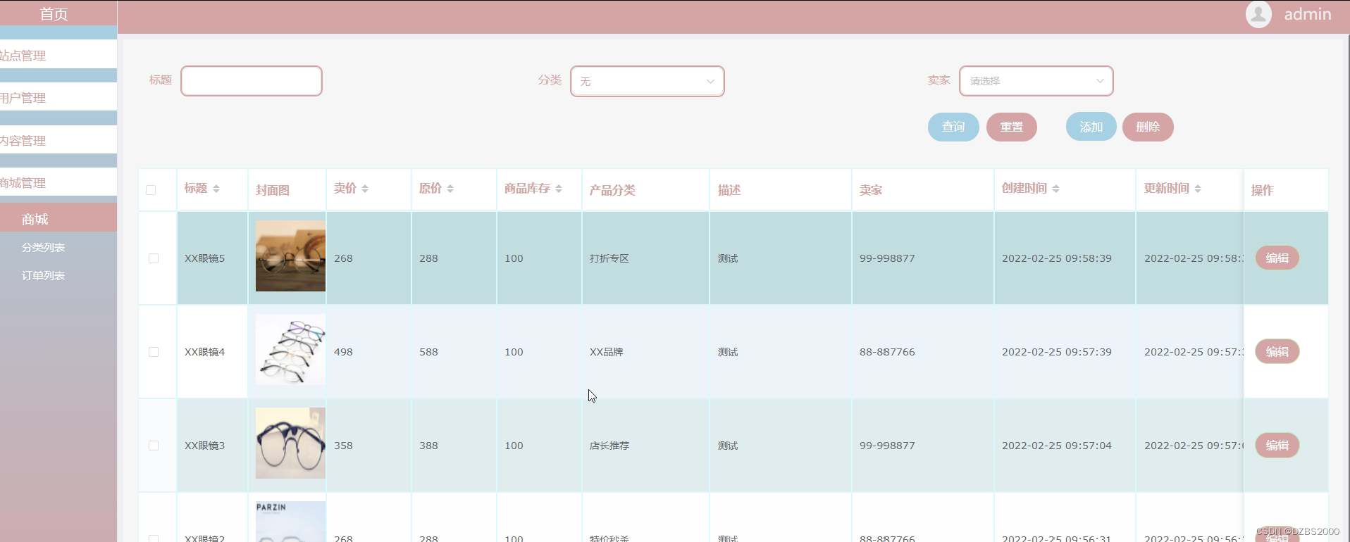眼镜商城管理界面如下图所示。