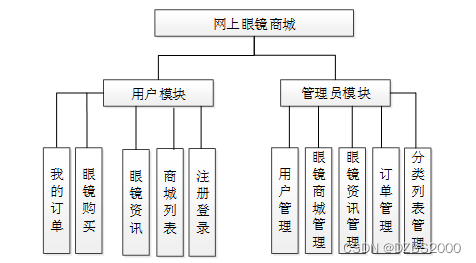 (2)眼镜管理模块:主要包括眼镜信息浏览、眼镜信息展示、眼镜搜索、眼镜购买等功能。