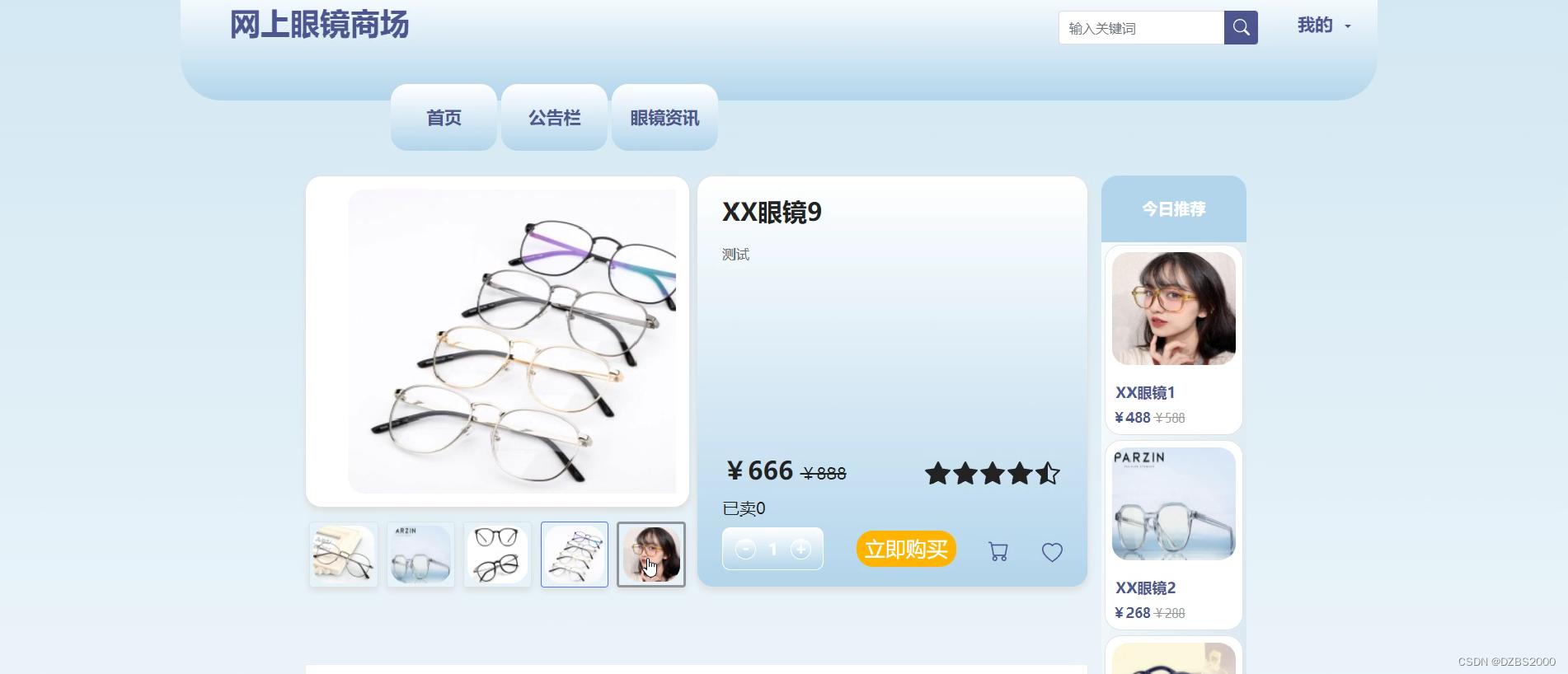 眼镜购买界面如下图所示。