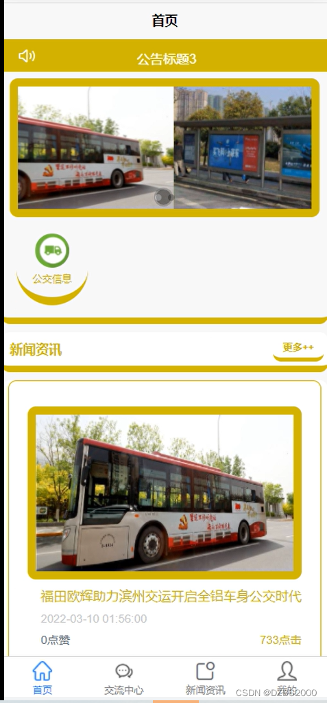 首页,可以进行首页、交流中心、新闻资讯、我的等功能模块的查看与操作,如图5-3所示。