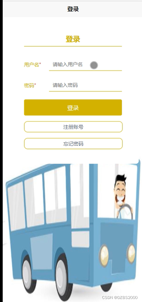 微信小程序的邢台市域直通公交系统登录界面,通过填写账号、密码、等信息进行登录,如图5-1所示。