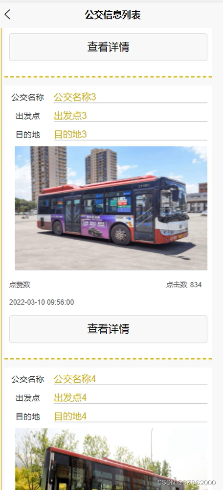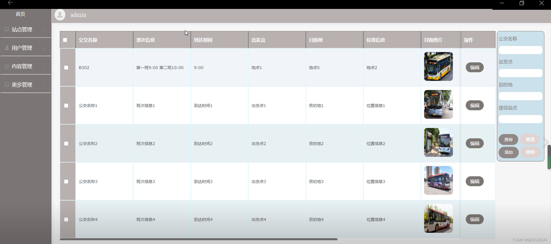 公交信息,在公交信息页面可以查看公交名称、班次信息、到达时间、出发点、目的地、位置信息、图片等内容,并可根据需要进行修改或删除操作,如图5-10所示。