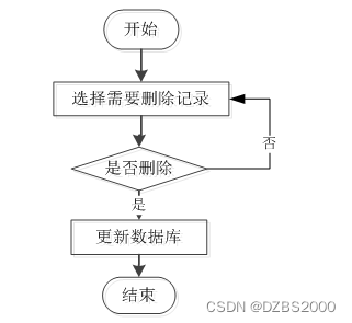 用户选择要删除的信息并单击Delete按钮。系统提示是否删除信息。如果用户想要删除信息,系统将删除信息。系统数据库删除信息。删除信息流程图如图3-5所示。