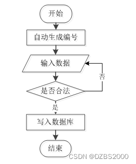 添加信息,编号系统使用自动编号模式,没有用户填写,用户添加信息输入信息,系统将自动确认的信息和数据,验证的成功是有效的信息添加到数据库,信息无效,重新输入信息。添加信息流程如图3-3所示。