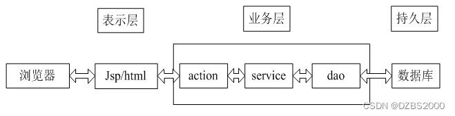 目前B/S体系的系统主要的数据访问方式是:通过浏览器页面用户可以进入系统,系统可以自动对用户向服务器发送的请求进行处理,处理请求是在系统后台中进行的,用户在浏览器页面上进行相应操作,就能够看到服务端传递的处理结果。高校学生综合评测系统主要分为视图-模型-控制三层架构设计。在视图层中,主要是操作在服务器端向客户端反馈并显示的数据,在模型层中,主要处理相关的业务逻辑、数据整合等,最后的控制层它介于视图和模型之间,主要是调整两层之间的关系,最终落实数据的传递。