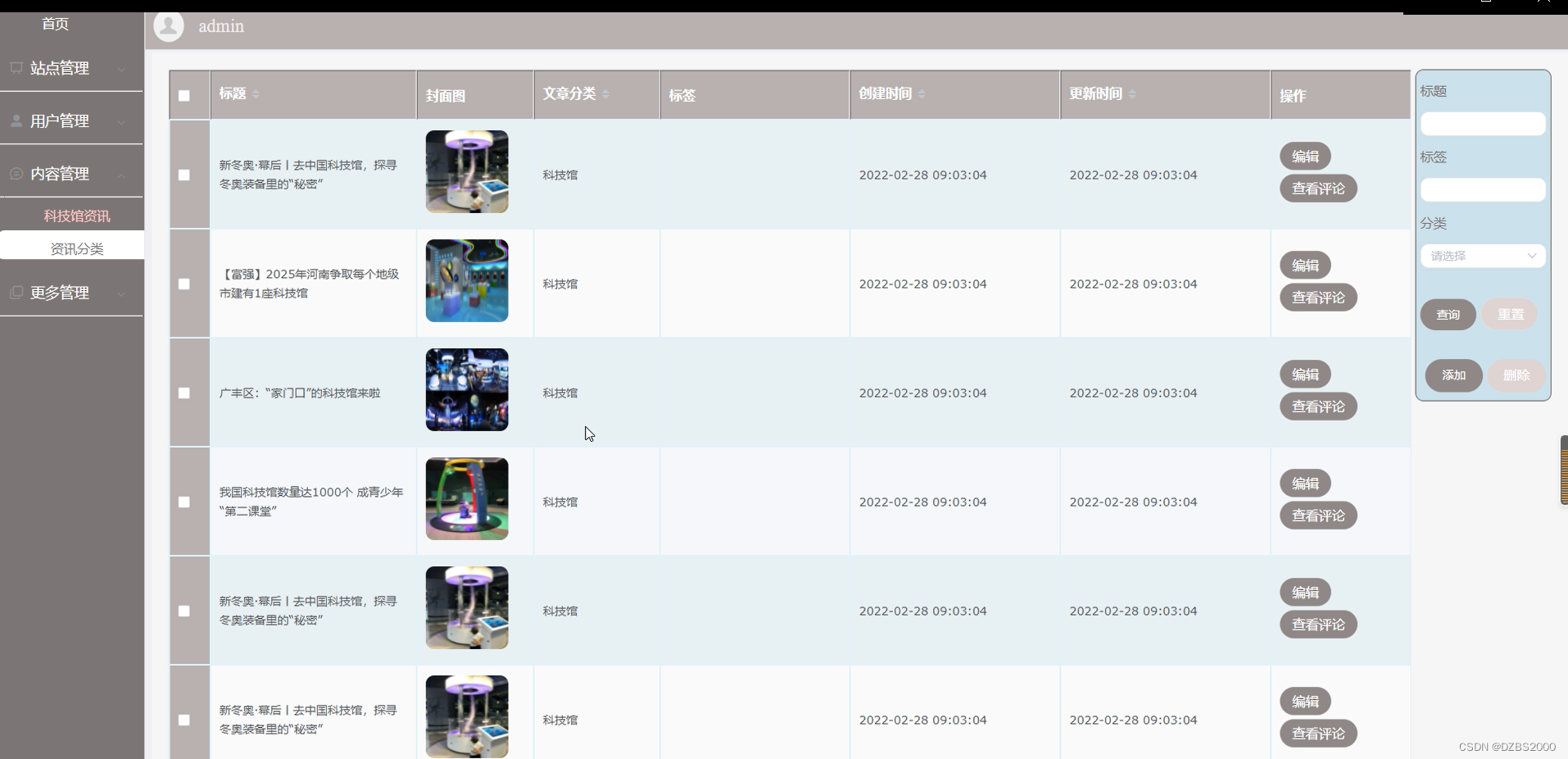 图5-5科技馆资讯管理界面图