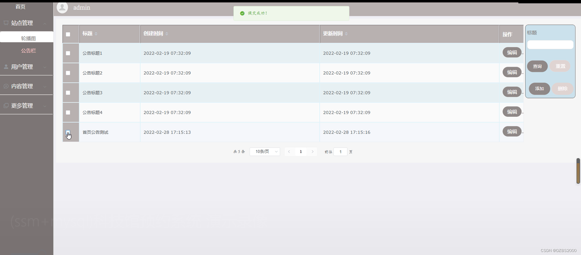 图5-3公告管理界面图