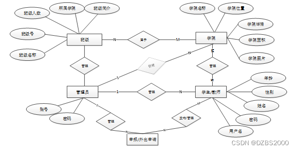 下面是整个校园疫情申报系统中主要的数据库表总E-R实体关系图。