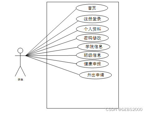 根据上一节功能分析,可以得出系统的用例,学生角色用例如图2.1所示。