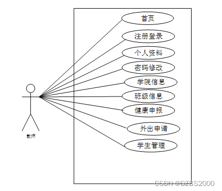 通过了解对校园疫情申报系统的真实需求后,将校园疫情申报系统所需要的角色划分整理成了下图2-1,图2-2和图2-3。