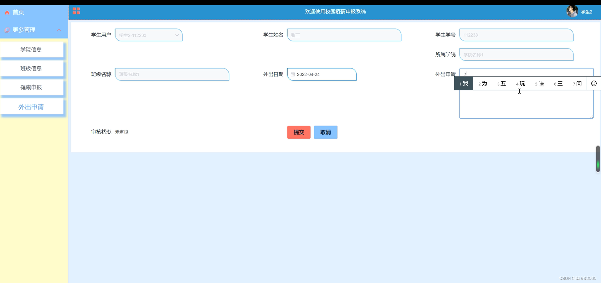 针对校园疫情防控需求,设计并实现了一款校园疫情申报系统。系统采用SSM框架和MySQL数据库,支持学生健康申报、外出申请等功能,提高了校园防疫管理效率。