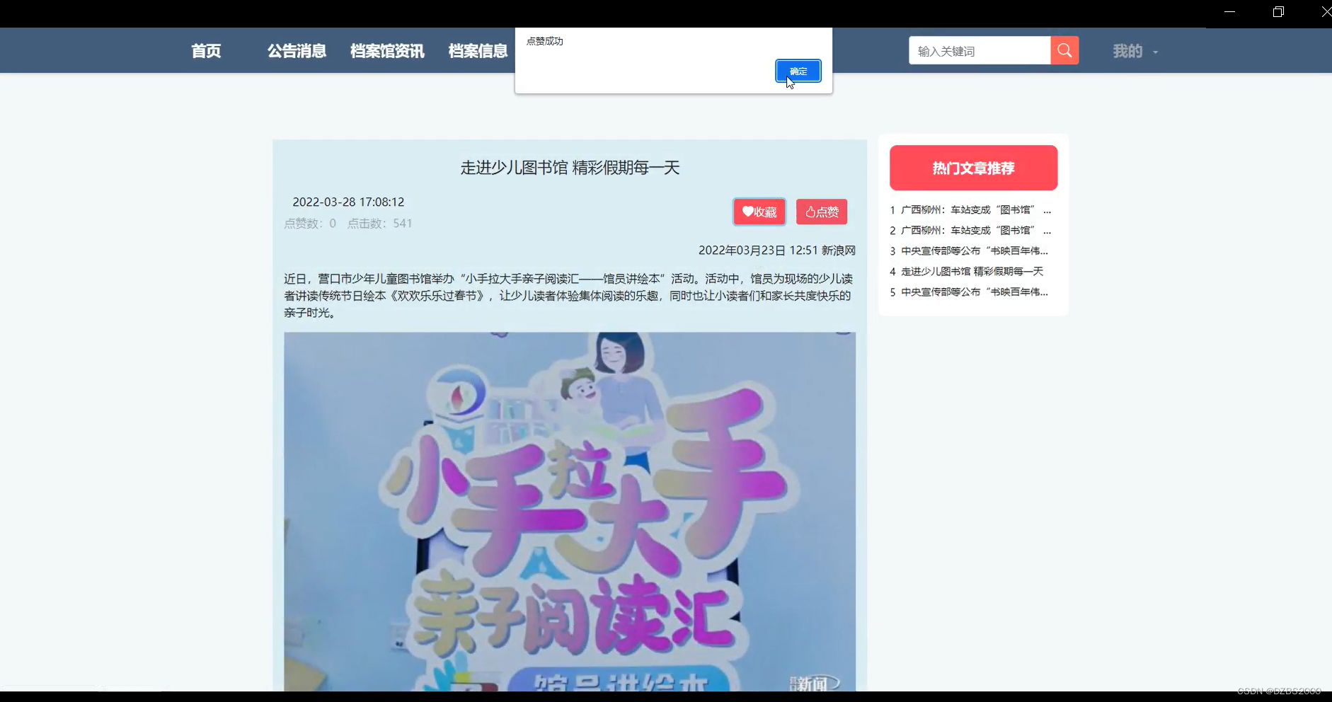 档案馆资讯,在档案馆资讯页面可以查看索引、封面、标题、内容等详情,如图4-4所示。