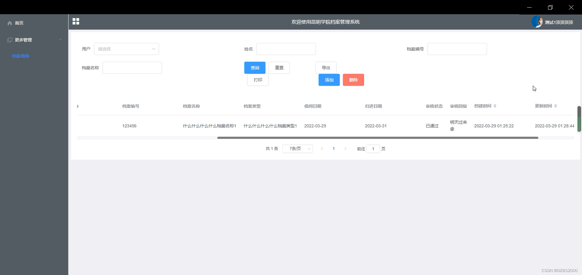 本系统还存在一些漏洞没有解决,在现实应用情境中很难保证完全不出错,但相信通过再次完善,可以调试出真正符合实际的学院档案管理系统。