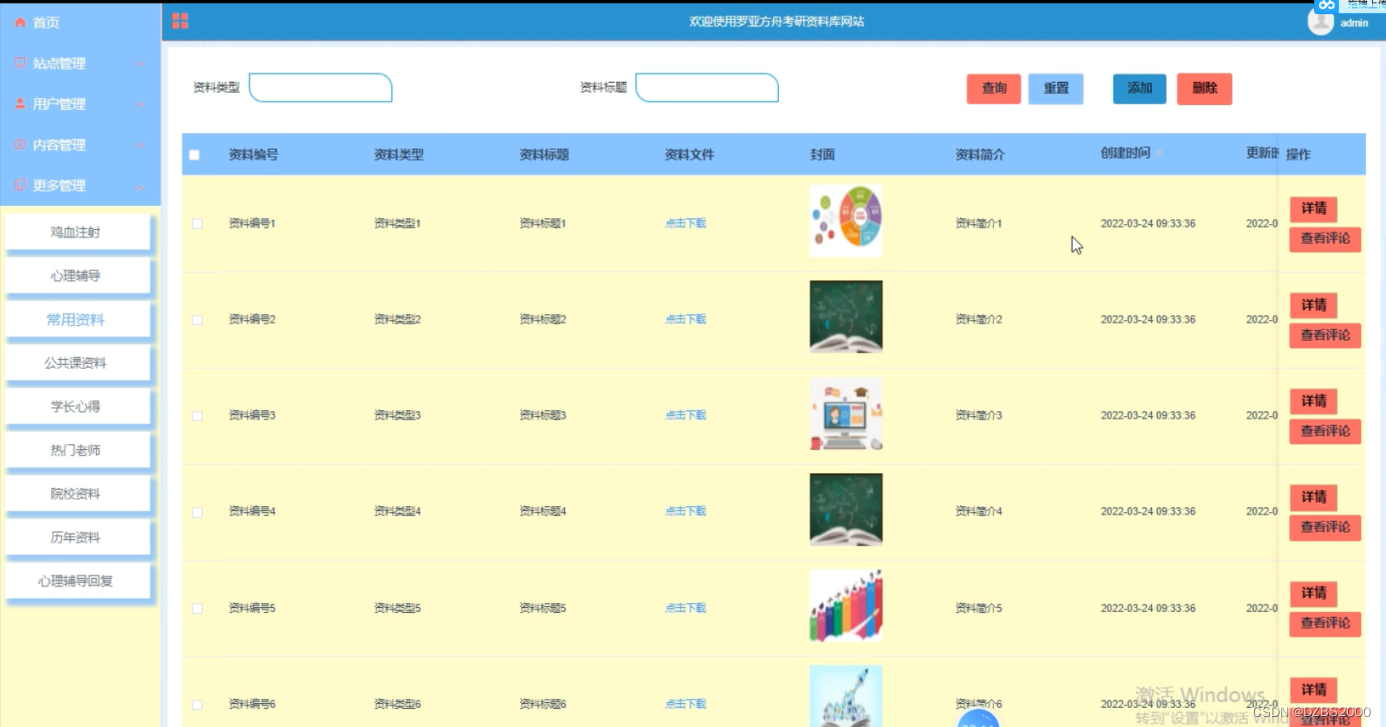 本系统采用Java技术和Mysql数据库构建了一个考研资料网站,支持用户注册、登录及资料浏览等功能,管理员可通过后台进行内容管理。