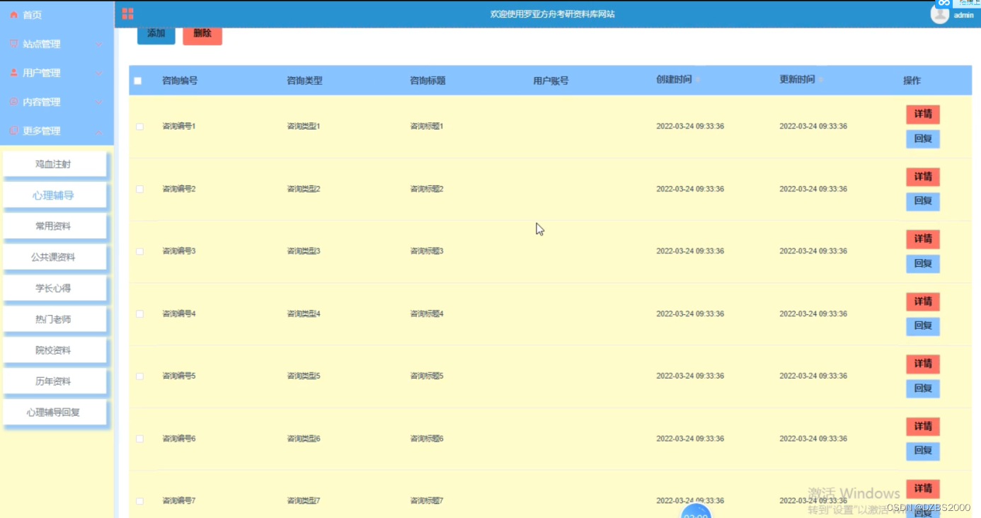 | 3 | 选中添加后按钮 | 无 | 跳转到心理辅导管理页面 | |