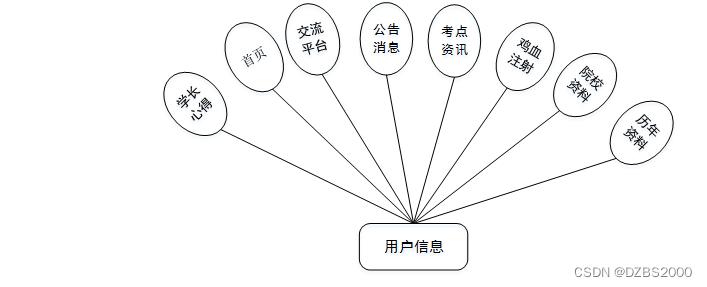用户进入系统可以进行首页、交流平台、公告消息、考点资讯、鸡血注射、学长心得、院校资料、历年资料等功能操作。用户用例如图3-8所示。