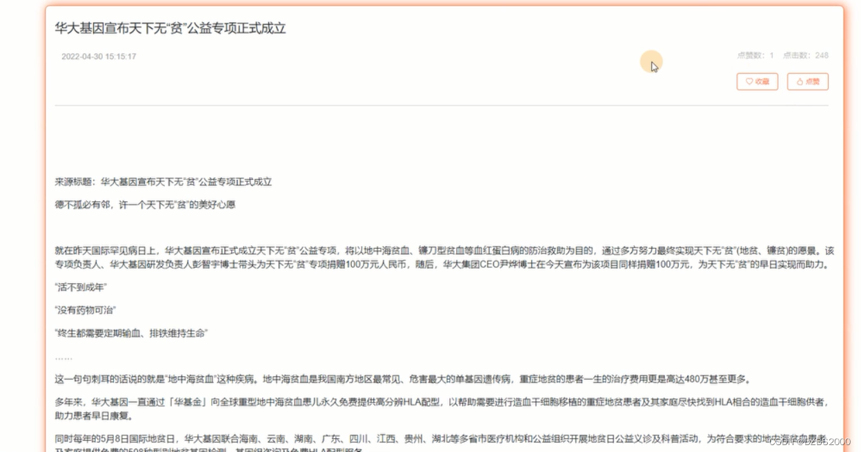 | 预期结果 | 可以查看到所有爱心资讯信息 |